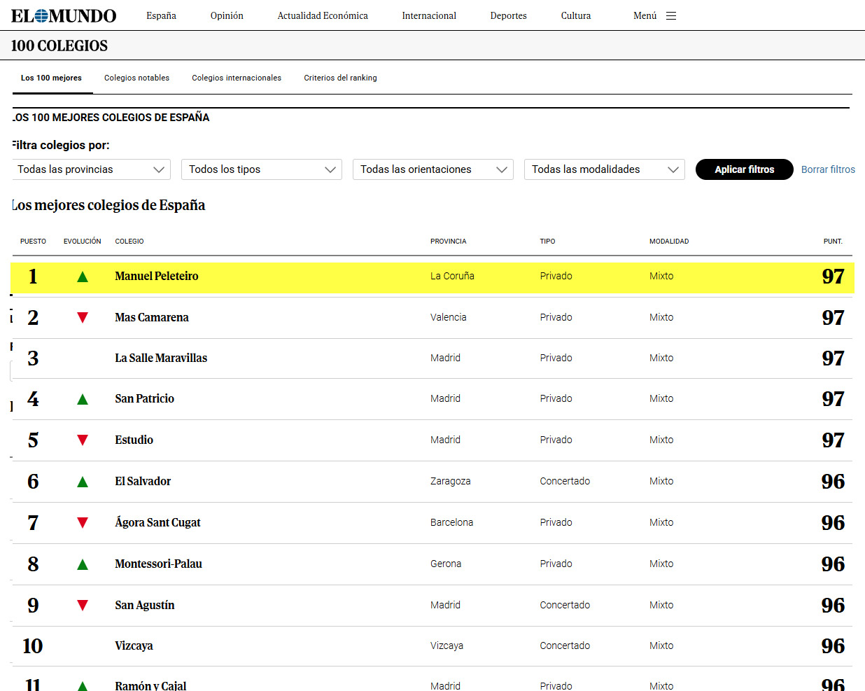 Reelegido Colegio Nº1 de España por el ranking nacional de El Mundo